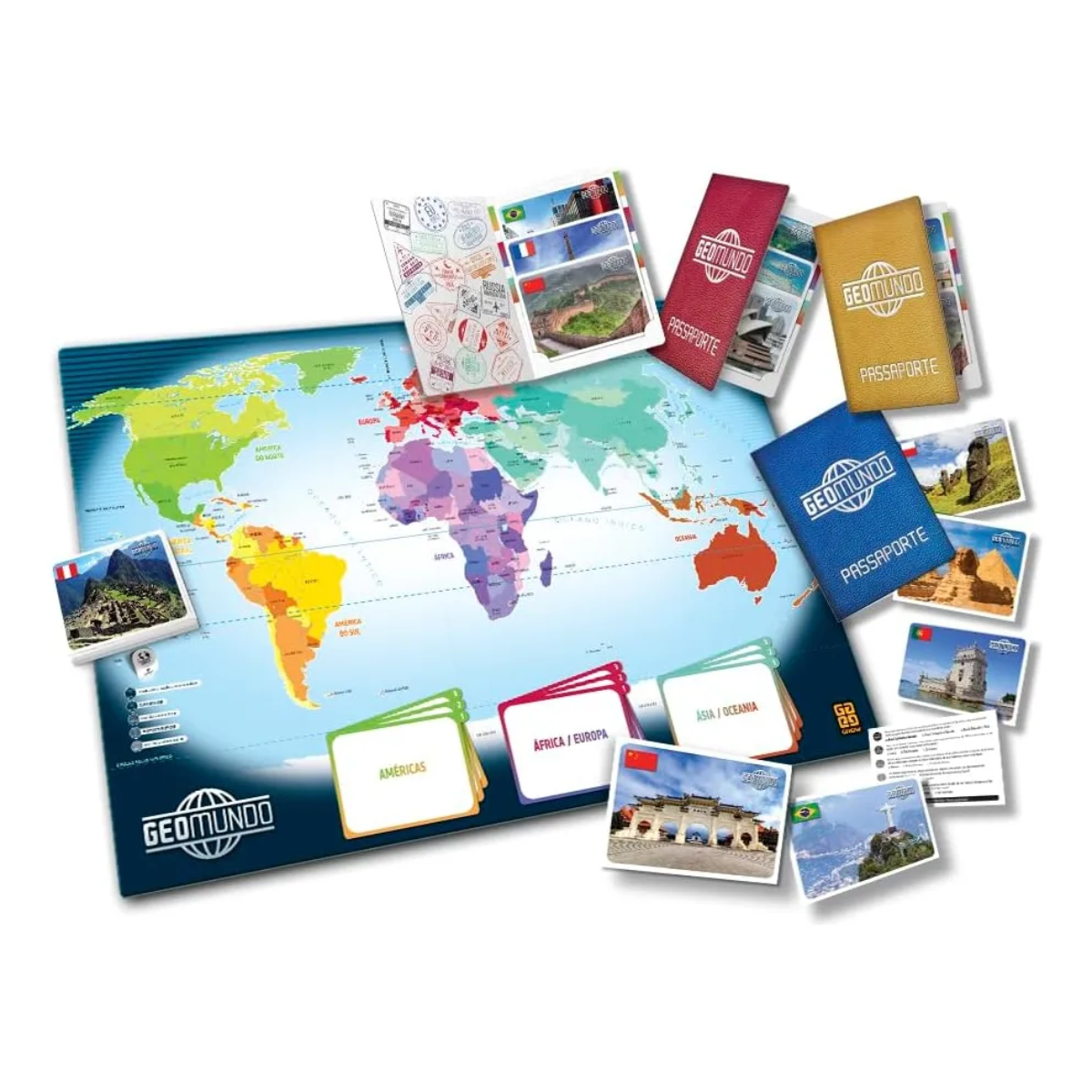 Não sei meu CEPCom o Jogo Geomundo da Grow, você pode explorar os cantos mais incríveis do mundo de forma simples e divertida! Este jogo de tabuleiro interativo, ideal para 2 a 4 participantes a partir dos 10 anos, é perfeito para quem quer aprender geografia de maneira lúdica. O objetivo é pegar uma carta, identificar o local e responder uma pergunta sobre geografia ou cultura, ganhando a carta e somando pontos com seu “carimbo” de passaporte.