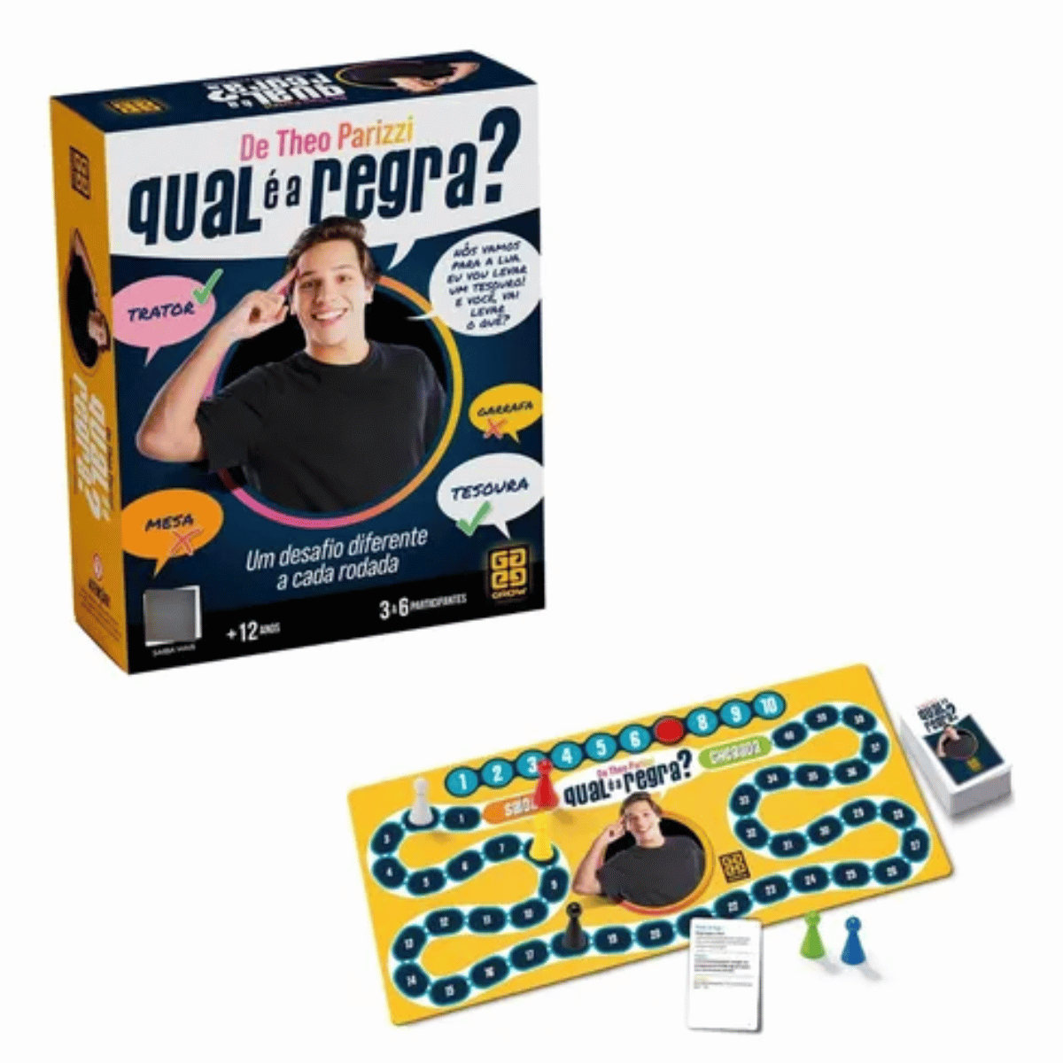 Não sei meu CEP“Qual é a Regra?” desafia os jogadores a explorarem suas habilidades de dedução em uma atividade dinâmica e surpreendente. O jogo é inspirado na brincadeira criativa do influencer Theo Parizzi com sua família, na qual ele dá dicas através de palavras ou ações. Enquanto isso, os familiares tentam ganhar pontos descobrindo a característica comum entre as dicas ou a regra por trás delas.