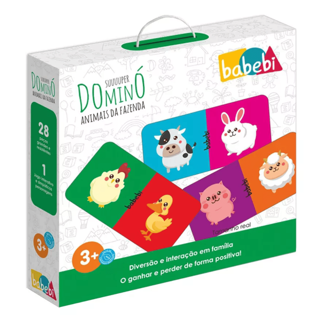 Não sei meu CEPO Jogo Educativo Super Dominó Animais da Fazenda acompanha 28 peças com a estampa de vários animais diferentes, acondicionados em uma caixa de papelão, e o brinquedo educativo tem como principal objetivo, além de estimular a coordenação motora e raciocínio das crianças, proporcionar interação entre a família e os amiguinhos.